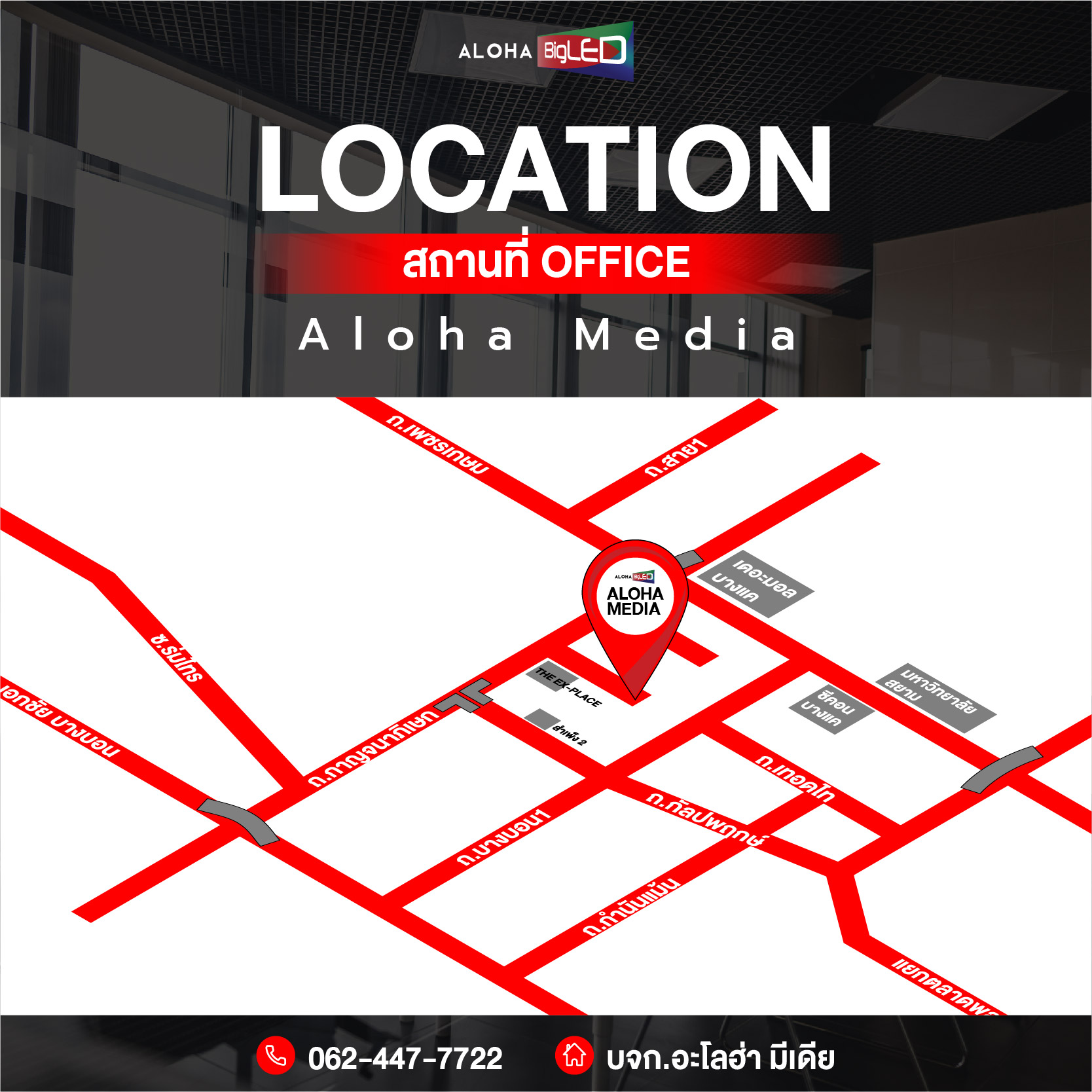 Aloha Media มีสถานที่ทำงานอย่างถูกต้องตามกฎหมาย ได้รับการรับรองมาตรฐานการติดตั้งมากมาย ให้บริการการติดตั้งผลงานในประสิทธิภาพสูง ด้วยทีมงานผู้เชี่ยวชาญมากฝีมือ มีประสบการณ์ด้านงาน จอ LED ขนาดใหญ่ โดยเฉพาะ รับประกันทุกงาน ยาวนานกว่า 3 ปี